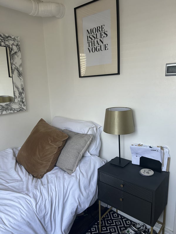 The available single room is cozy and practical, perfect for someone looking for a budget-friendly accommodation option. The furnishings are simple yet functional, providing a comfortable space for rest and study. Shared spaces in the flat are well-maintained and offer a welcoming atmosphere for residents to relax and socialize. The overall feel of the living space is warm and inviting, making it a great place to call home.