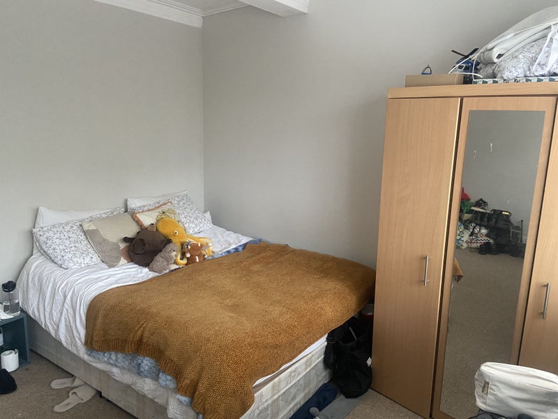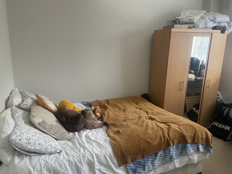 The available double room in this flat is spacious and well-equipped for comfortable living. With ample storage space and a dedicated work desk, residents can easily organize their belongings and create a productive workspace. The shared living room is furnished with a cozy sofa and a dining table, providing a cozy setting for social gatherings and relaxation. The overall feel of the flat is bright and airy, with plenty of natural light streaming in, creating a pleasant atmosphere for residents to unwind after a long day. Practicality and comfort are key aspects of the living space, ensuring that residents feel at home in this welcoming environment.