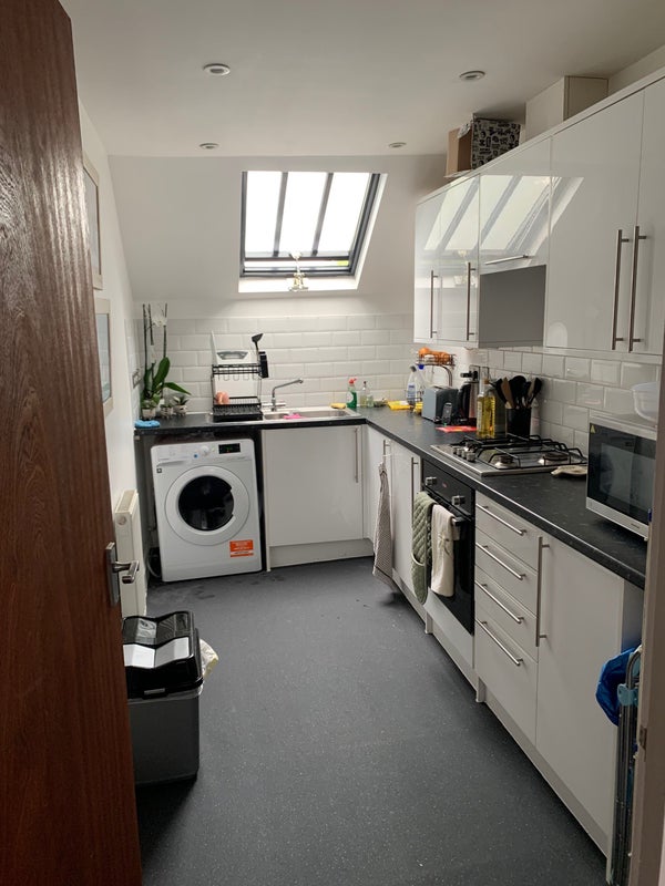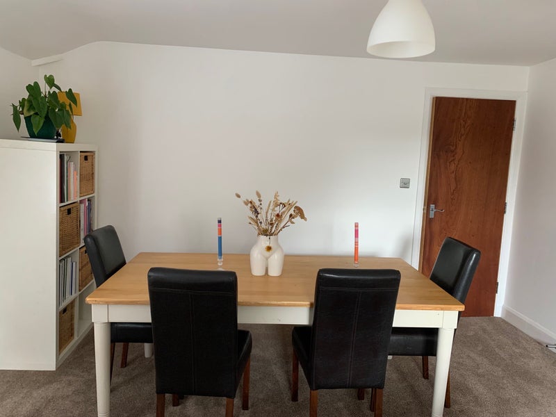 The available room comes partially furnished with a bed and shelving unit, offering comfort and convenience. The overall feel of the flat is cozy yet spacious, providing residents with a welcoming atmosphere to relax and unwind. Shared spaces like the sitting room/dining room are perfect for socializing or enjoying quiet evenings. The flat's layout allows for privacy and independence, making it an ideal living space for someone who values their personal space. Residents can also enjoy the communal grass area in the generous driveway during the summer months.