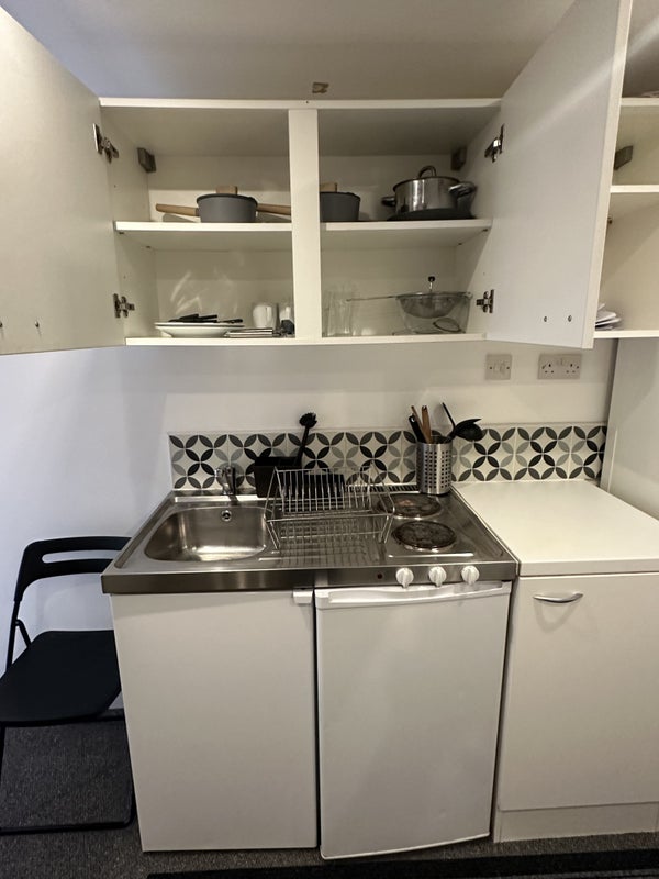 The studio flat boasts a cozy and functional living space, perfect for a single occupant. The room includes a newly furnished ottoman bed with ample storage, creating a comfortable sleeping area. The whole flat has been repainted, giving it a fresh and modern feel. The private entrance from the garden adds a touch of exclusivity to the space. Shared facilities such as 2 washing machines and a dryer in the house above ensure convenience for residents. The atmosphere of the flat is welcoming and practical, offering a peaceful retreat after a busy day.