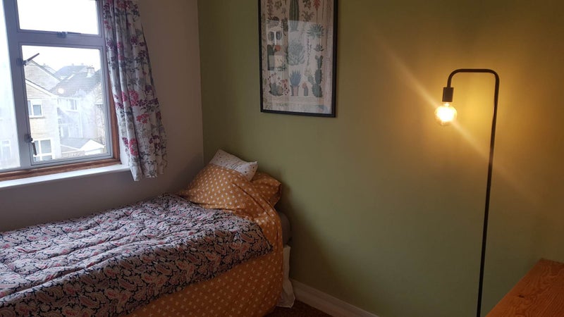 Located on the northern edge of Bath, this lovely family home offers a bright room available for rent. The room is fully furnished with a double or single bed, desk, chest of drawers, and other essentials. All bills are included in the rent, making it a hassle-free living arrangement. The house features 100mb broadband, blackout curtains, and a brand new bathroom. The kitchen-diner has been recently refurbished and provides direct access to the garden with stunning countryside views. The friendly host, who has two primary-school age children and a cat, has a history of sharing her home with flatmates and lodgers.