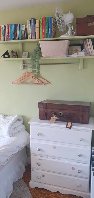 The available room in this family home is designed for comfort and practicality. The furnishings are well-maintained, and the overall atmosphere is welcoming. With access to shared spaces like the kitchen-diner and garden, residents can enjoy a cozy living environment. The room is equipped with all the necessary amenities for a comfortable stay, including storage space in the garage for a bike. The host's friendly and accommodating nature adds to the overall appeal of the living space.