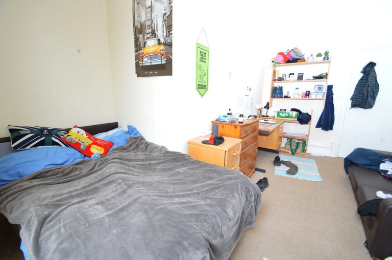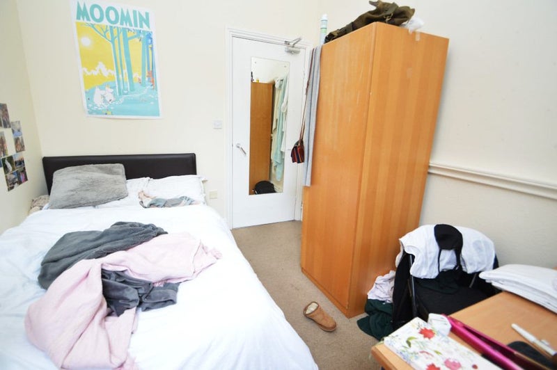The living/dining area in this property is spacious and inviting, furnished with a sofa suite and a dining table with chairs. The modern fully fitted kitchen includes essential appliances such as a washing machine, oven, hob, fridge freezer, and microwave. The shared bathrooms are well-equipped with a shower, wc, and handbasin. Each double bedroom is fully furnished with a bed, mattress, desk, desk chair, wardrobe, and additional storage, ensuring comfort and convenience for all residents.